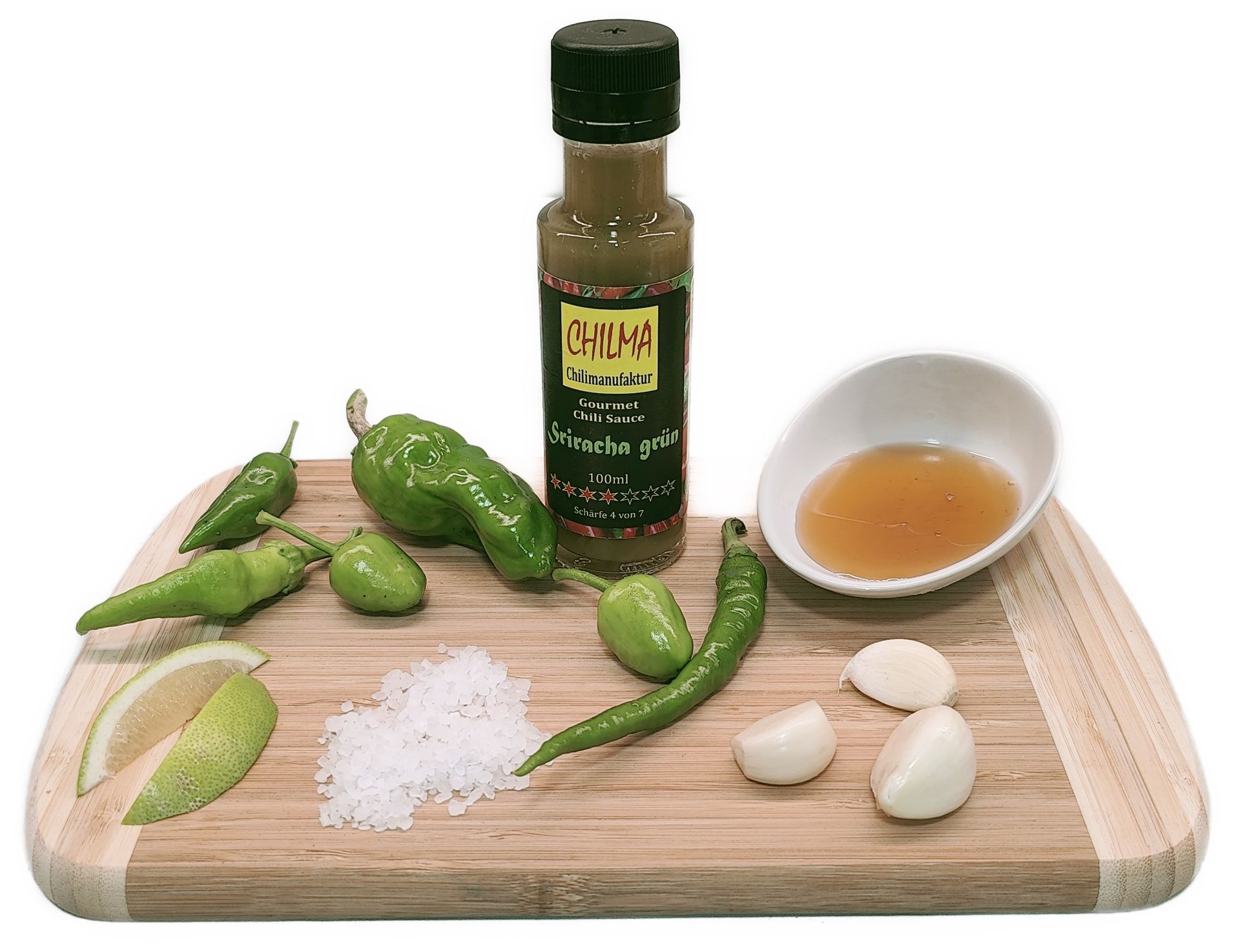 Spicy chili sauce with habanero chilis and various types of chilis, garlic, ginger and lime juice.