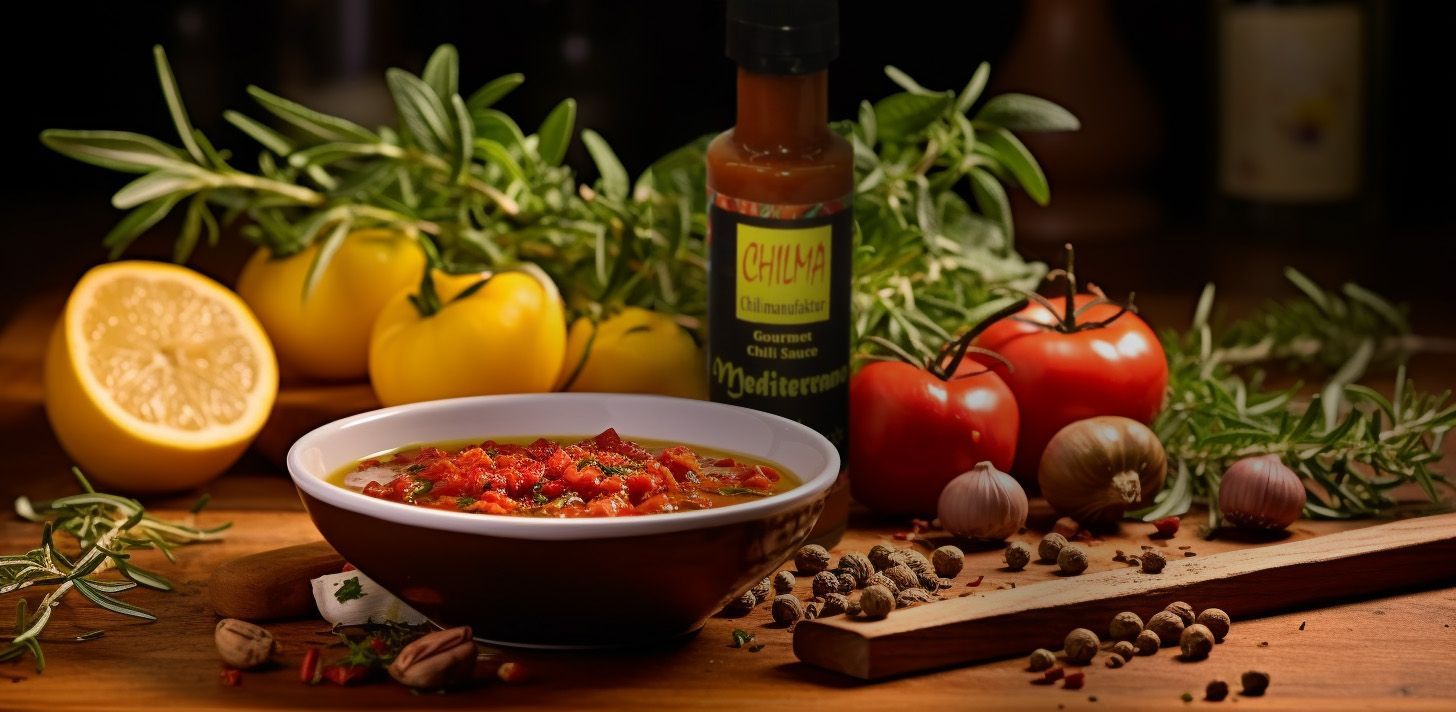 Mediterrano - Unser Ur-Produkt - Damit hat es 2015 angefangen Unser Verkaufspartner, Haus der Manufakturen in Köln, Breite Straße 80-90 Quincy hat zu unseren großen Freude Werbebilder angefertigt und diese auch uns zur Verfügung gestellt. Das nehmen wir zum Anlass auf unsere Produkte einzugehen. 2015 hatten wir zu viele Chilis angebaut und wir haben uns überlegt, wie wir diese haltbar machen könnten. Gerd hatte die Idee eine Sauce daraus zu machen. Wir haben einige davon verschenkt und waren über die positive Rückmeldungen erfreut und überrascht. So haben wir angefangen mehrere Rezepte zu entwickeln und dann 2017 die Firma angemeldet und angefangen zu verkaufen. Die Mediterrano wurde natürlich noch verbessert und ist bis heute eine unserer angesagtesten Saucen.