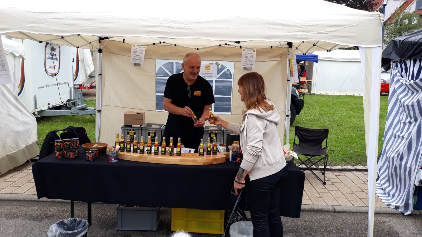 Gestern hatten wir unsere erste Bewährungsprobe auf einem Naturparkmarkt in Wüstenrot. Ist eigentlich ganz gut gelaufen. Allerdings hatten die Wüstenroter wohl zuerst Schwierigkeiten, sich für das neue Produkt zu interessieren. Nachdem aber die ersten Gespräche stattgefunden hatten, wurden wir rege nach unseren Produkten ausgefragt und es wurde ausgiebig probiert. Alles in Allem hatten wir einen schönen Tag und bestimmt ein paar neue Fans gefunden. Vielen Dank an alle Besucher.